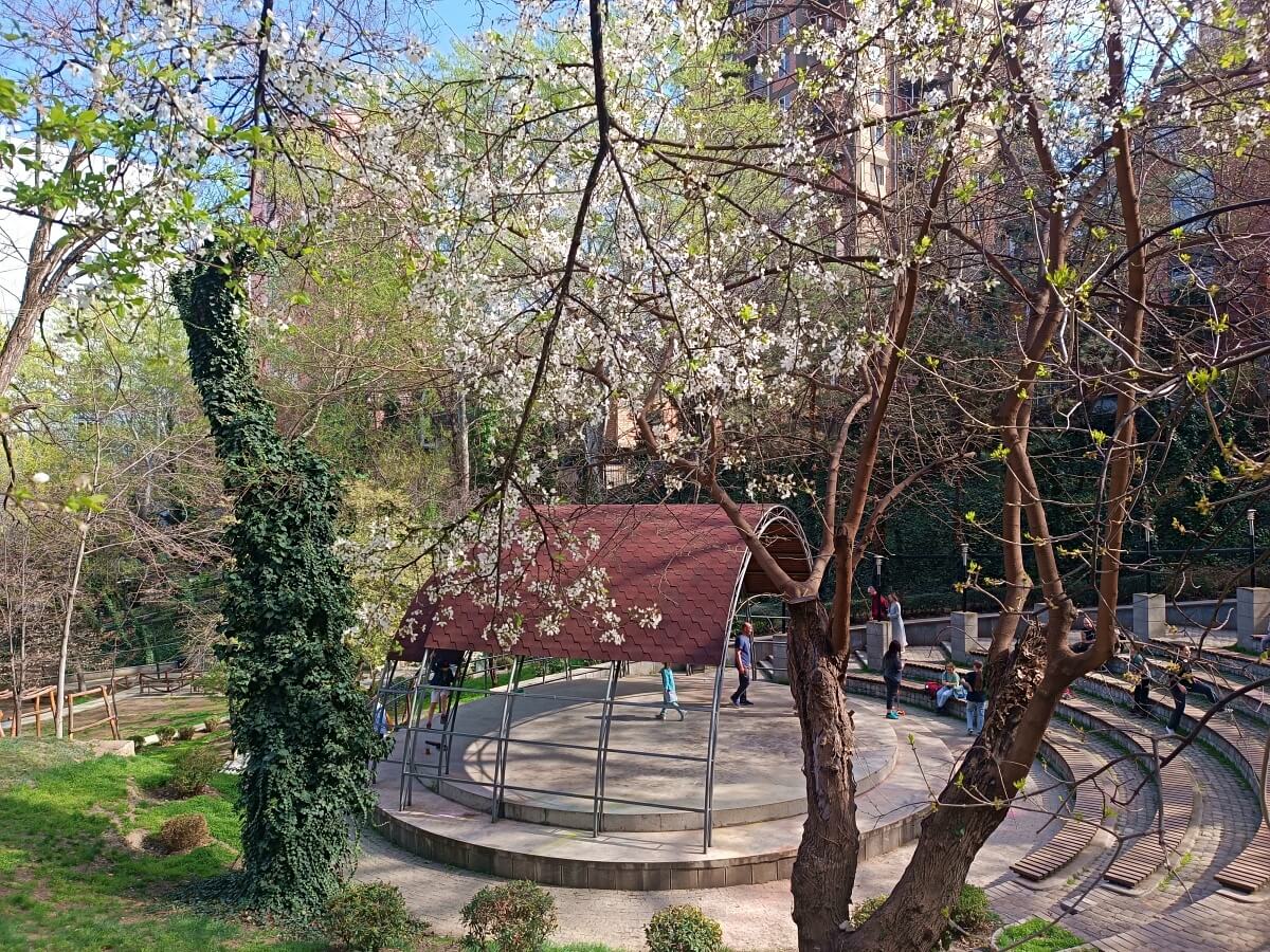 პარკში ყველა თავისუფალი ადგილი დაკავებულია, (აქამდე კი მხოლოდ კაფესა და მზიურის გრძელ სკამებზე შეხვდებიდით რამდენიმე ადამიანს.) ჰაერის ტემპერატურა კომფორტულია. ნალექი არ არის.